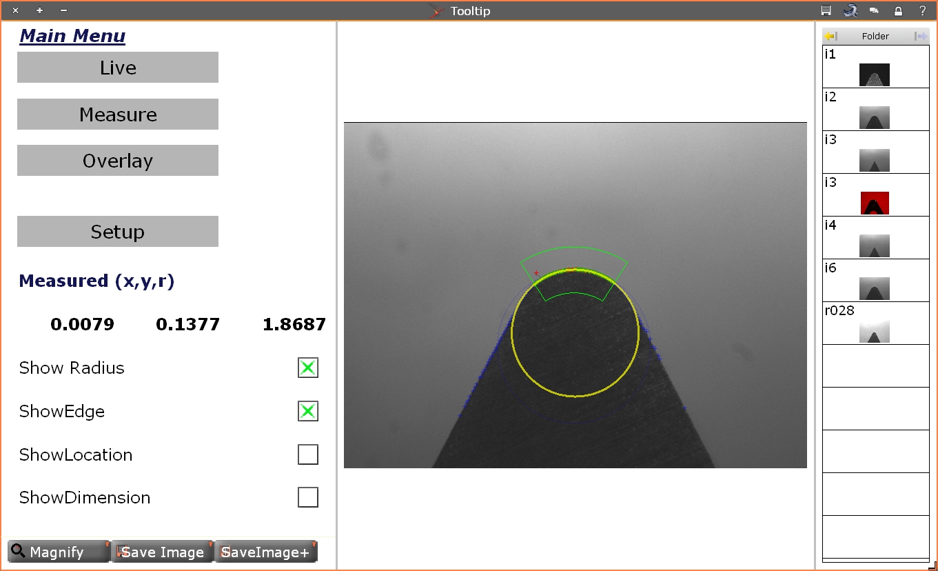 - automated measuremenet of the tip radius or